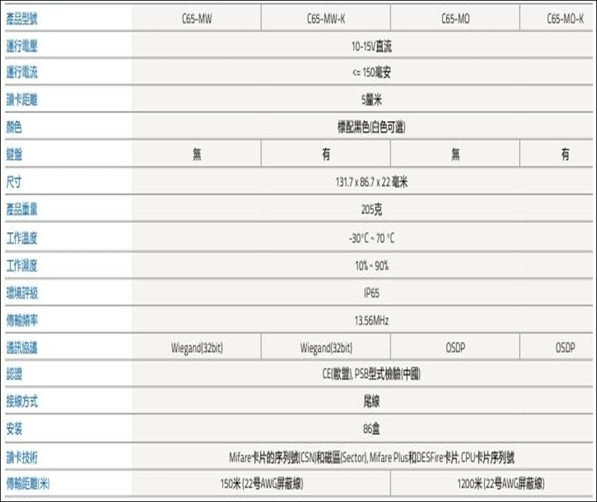 支援OSDP協定觸摸式鍵盤配合回饋式背景燈設計具備防拆保護滿足IP65要求的全天侯防水設計電源反接保護