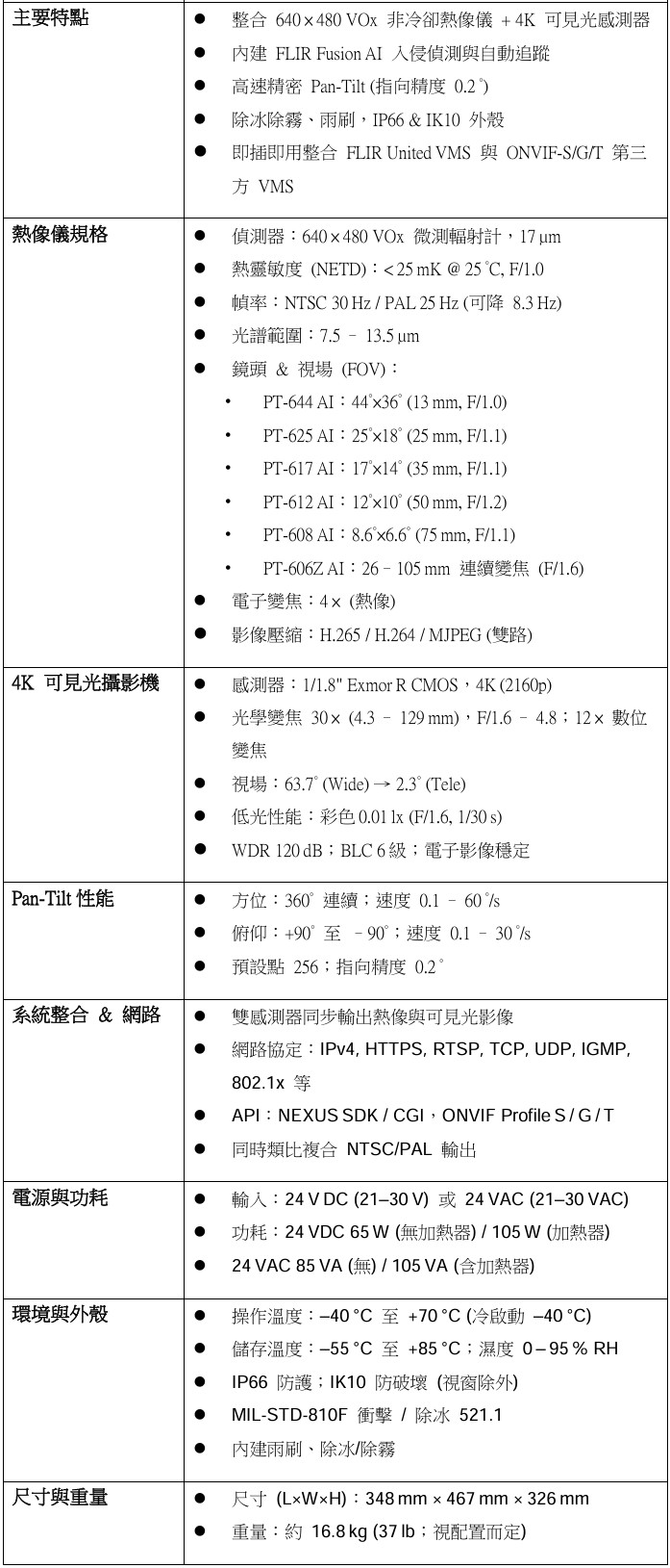 ≤1 km 短程周界與入侵偵測關鍵基礎設施、工業園區、機場與港口安全低光 / 全黑 / 惡劣天候 24 × 7 監控