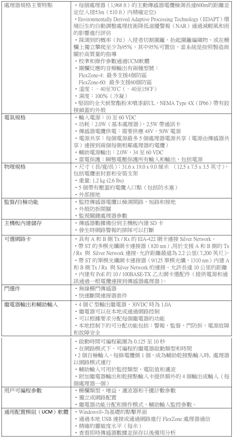 檢測並確定周圍的入侵每個傳感器處理器的最大距離為600m(1,968 ft) 精確±3m(±10 ft)的入侵定位 精密靈敏度精確度(每米) 高檢測概率(Pd)) 低功耗