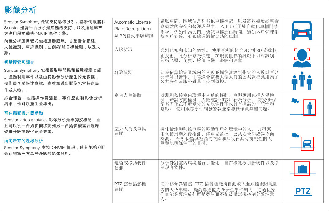 • 影像管理、影像分析、安全管理、門禁控制 和數據智慧功能的統一平台